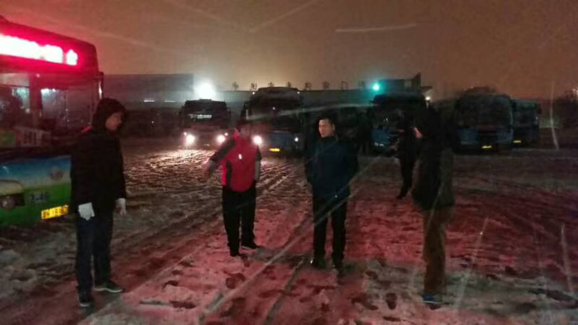 1月3日下午,荊門迎來(lái)了新年里第一場(chǎng)大雪,荊門氣象已經(jīng)發(fā)布暴雪警報(bào),收到暴雪警報(bào)后,荊門市公共交通集團(tuán)有限公司立即成立了150人的暴雪應(yīng)急隊(duì),早早準(zhǔn)備了防凍防滑物資:鹽2噸,防滑鏈400余條,鐵鍬60把,救援車10臺(tái);公司領(lǐng)導(dǎo)全部到一線坐鎮(zhèn)指揮,管理人員向近千名駕駛員傳授了雨雪天安全駕駛知識(shí);晚十點(diǎn),巡查人員開始查看危險(xiǎn)路段結(jié)冰情況,確定凌晨裝防滑鏈和撒鹽人員;凌晨4點(diǎn)應(yīng)急人員和駕駛員全部到位,按探路組、裝防滑鏈組、撒鹽組、監(jiān)管組分工負(fù)責(zé),并對(duì)出車駕駛員逐車逐人安全叮囑!以求能確保所有車輛都能一路平安!