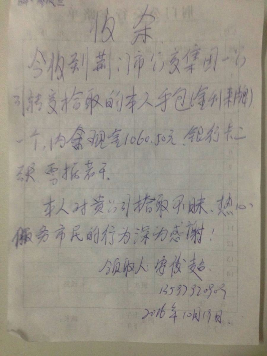 外環(huán)154駕駛員廖鳳蘭車內(nèi)拾到錢包一個,交到公司后,失主聯(lián)系核實后領(lǐng)走。