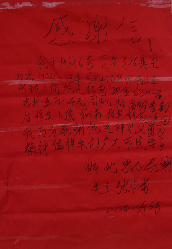 公交公司相關(guān)人員表示,對于楊昌明見義勇為的行為,肯定會給予獎勵。記者還了解到,失主張女士于7日將一封感謝信交到了楊昌明所在的公交公司,再次表達了她的感激之情。