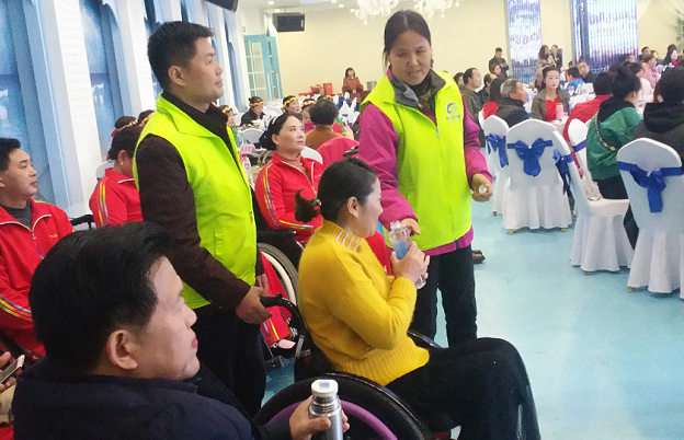 11月30日在荊門市殘疾人聯(lián)合會(huì)、荊門市智力殘疾人及親友協(xié)會(huì)、荊門市圓夢(mèng)愛心幫扶會(huì)舉辦的主題為“包容殘疾人 創(chuàng)建文明城” 的“2018‘國際殘疾人日’紀(jì)念活動(dòng)中,16名荊門公交志愿者在引導(dǎo)、簽到、幫助殘疾人出行、舞臺(tái)道劇、督導(dǎo)等志愿活動(dòng)中,受到殘疾朋友們真誠的感謝和與會(huì)嘉賓、領(lǐng)導(dǎo)們的一致好評(píng)。